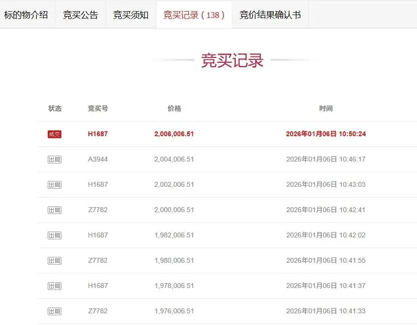 而如此高的抵押债权,此次拍卖的别墅,起拍价却只有144.8006万元,远低于抵押债权。可能是起拍价偏低的原因,拍卖开始后,吸引了6个人报名竞拍,别墅非常抢手,竞拍过程非常激烈,最终经过了138次加价才结束拍卖,别墅最后以200.6006万元成交,成交价比起拍价高出了55.8万元,成交单价1.0477万元/平方米。