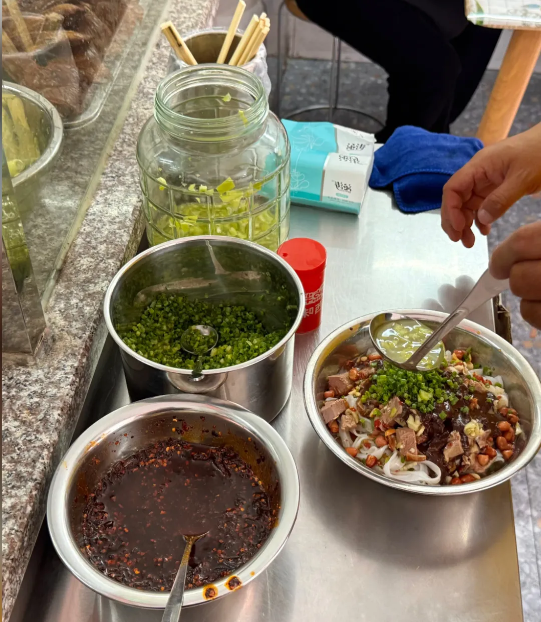 15年前,他带我来的时候,这还是个满城尽是螺蛳味的地方。15年后,虽然他早就消失在人海,但我却在这个城市找到了新的快乐——烧鸭粉。经常有朋友问我:“后悔当初为了一个人远走他乡吗?”看着眼前这碗便宜、量大、料多多的烧鸭粉,我只想说:不后悔,因为这里的东西太好吃了 。看着店里热气腾腾,听着老板剁鸭子的声音,给自己点上一份最豪华的鸭腿粉,加满葱花,浇足辣椒水。04. 建议全国普及,别光盯着螺蛳粉了!