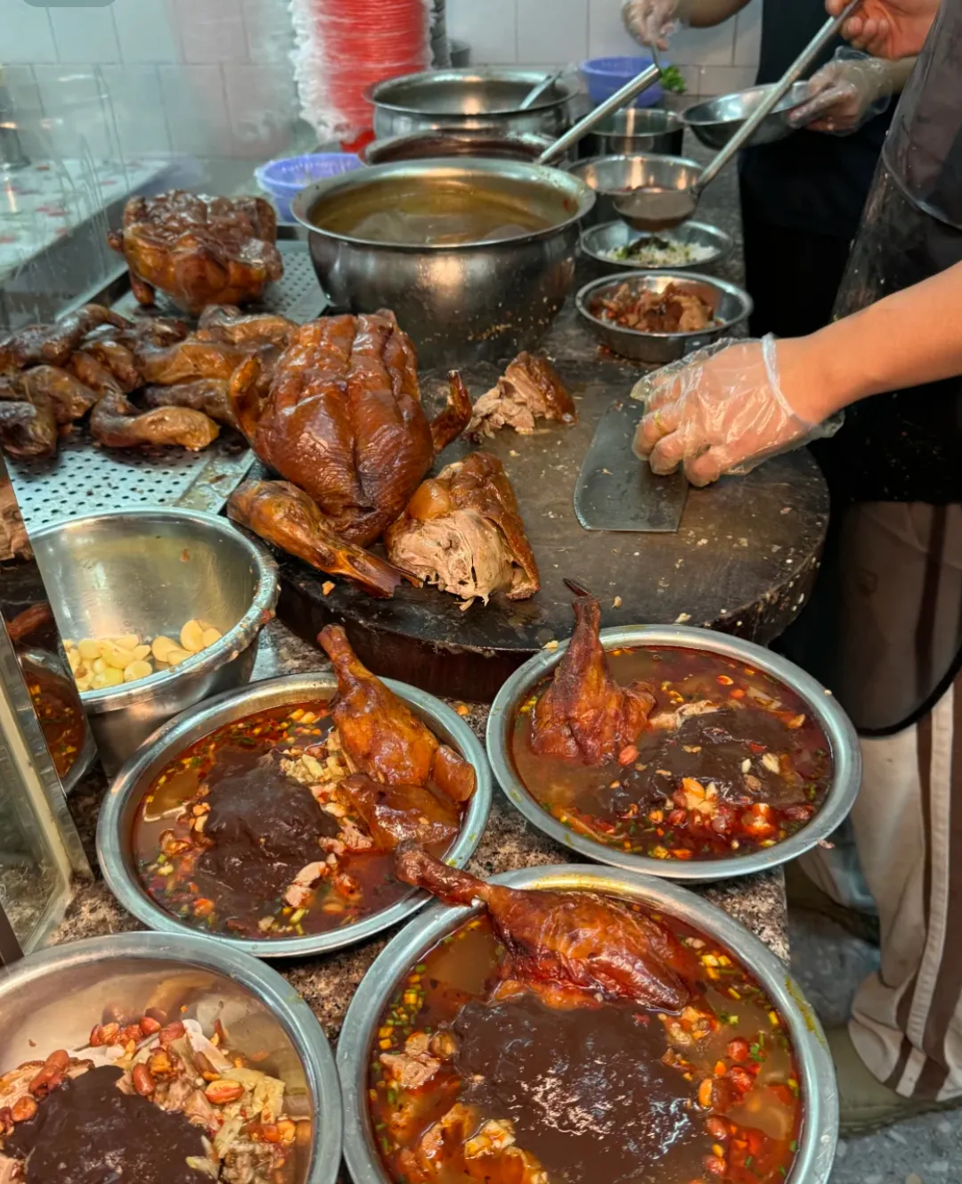 现在年纪在那了,才懂这种清爽的“辣椒水”有多珍贵。它是用生辣椒加上醋或者特制的酸水调的,不是那种死辣,而是一种酸辣鲜活的口感。当你觉得烧鸭肉吃多了稍微有点腻的时候,来上一口辣椒水,或者把肉在里面蘸一下。网友说它是灵魂伴侣,我举双手赞成。比起那个让我伤心的前任,这碗辣椒水才是懂我的那个“伴侣”,永远不会让我失望。03.