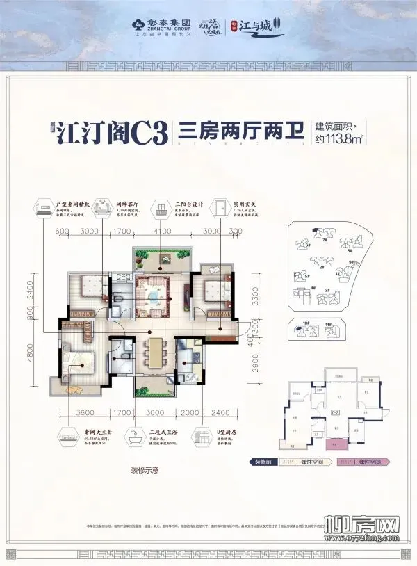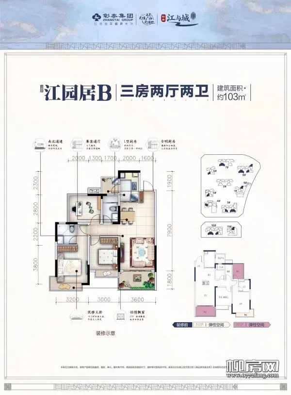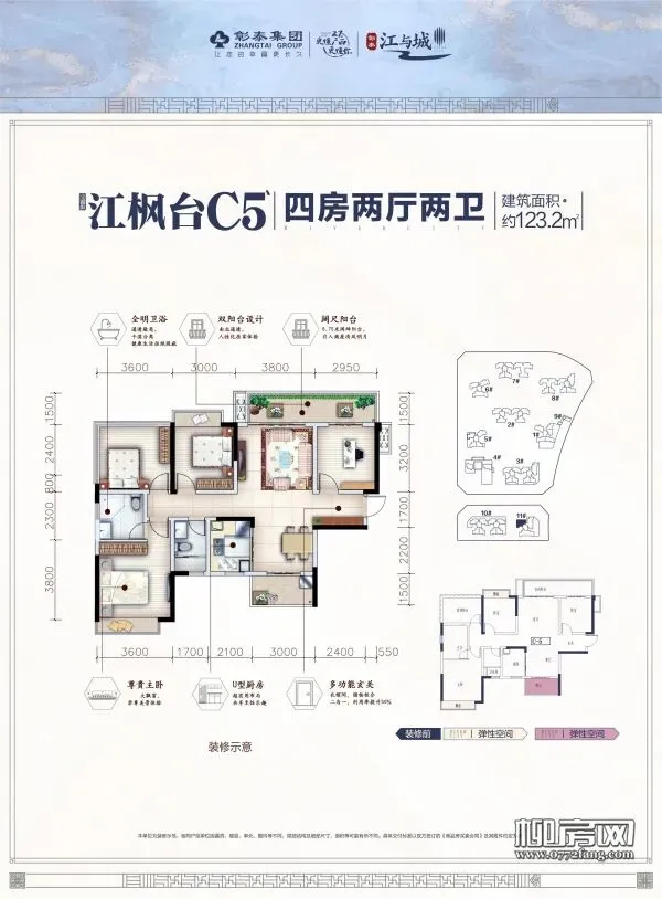 而户型的设计也事关每一户业主的舒适度,彰泰江与城目前在售的建面约80-143㎡两至五房户型每一户都是南北朝向,扩展性高,通透性强,楼间距宽大,是健康生活优质之选。