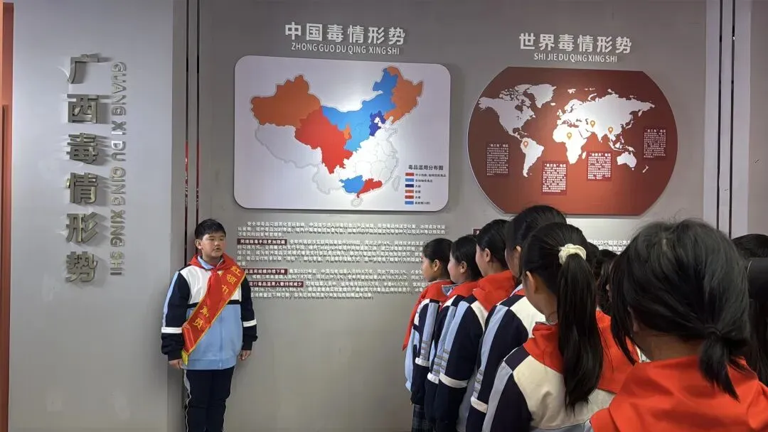 为深入贯彻落实青少年毒品预防教育工作要求,切实提升青少年识毒、防毒、拒毒能力,着力营造健康清朗的成长环境,引导广大青少年树立正确世界观、人生观、价值观,培养积极向上的生活情趣,深刻认识远离毒品是维护个人健康、家庭幸福和社会稳定的重要责任。1月8日,由共青团柳南区委员会、柳南区禁毒教育基地、柳州市革新路第一小学共同举办的“青春无毒·向阳而生”防范青少年药物滥用教育活动在柳南区禁毒教育基地顺利开展。少先队员通过实地参观、互动体验、知识比拼等形式,为青少年上了一堂生动的“禁毒必修课”。