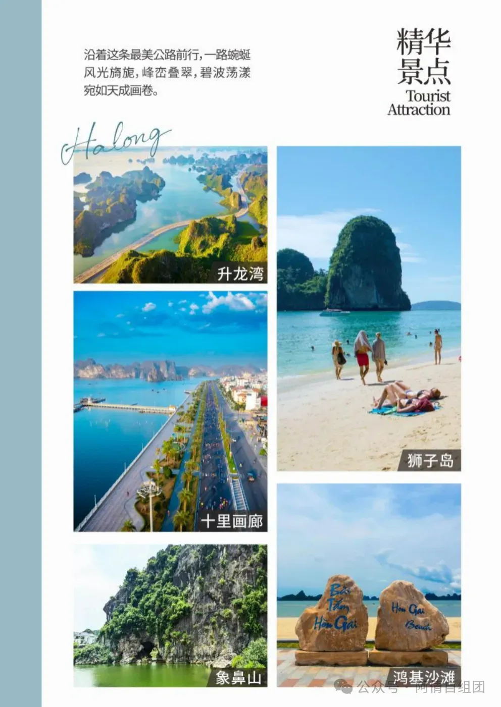车览越南版【十里画廊】,从下龙沿海公里直下,这一路风景优美,蓝天白云笼罩下宛若名师的一幅画卷。沿途群峰竞秀,百岩争奇,波光凌凌的海水点缀其间,返朴归真,再现了远古文明之典型