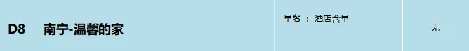 早餐后自由活动,根据航班/车次时间乘车前往南宁机场/车站,乘机/车返回散团地,回到温馨的家,结束愉快的旅程。