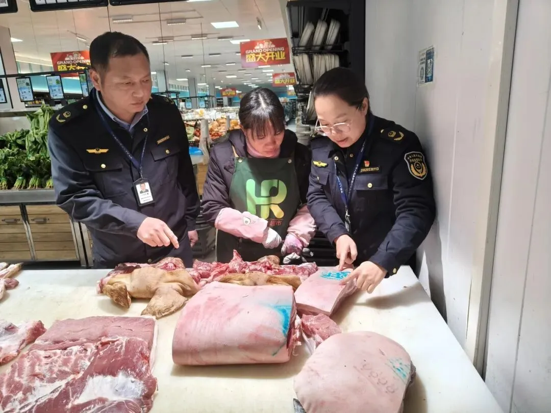 本周,鹿寨县市场监管局联合县农业农村局,深入四排镇农贸市场、超市及肉类摊点开展猪肉质量安全专项检查。