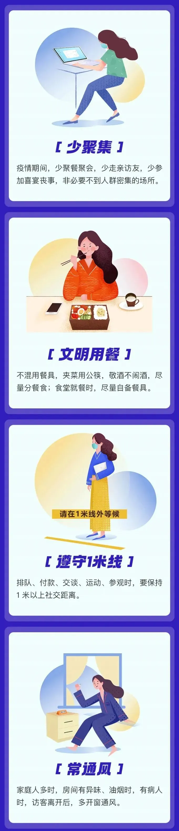 请继续保持良好的个人防护意识。坚持佩戴口罩、勤洗手、常通风、保持1米线,不扎堆、不聚集,注意咳嗽礼仪。