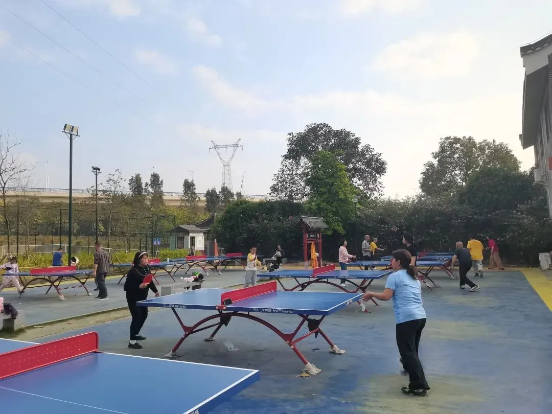 乒乓球场热闹非凡,人们挥拍对打,乒乓球的方向随着球拍的撞击不停转换,映射出运动的快乐,看得不会打球的我都想加入了。