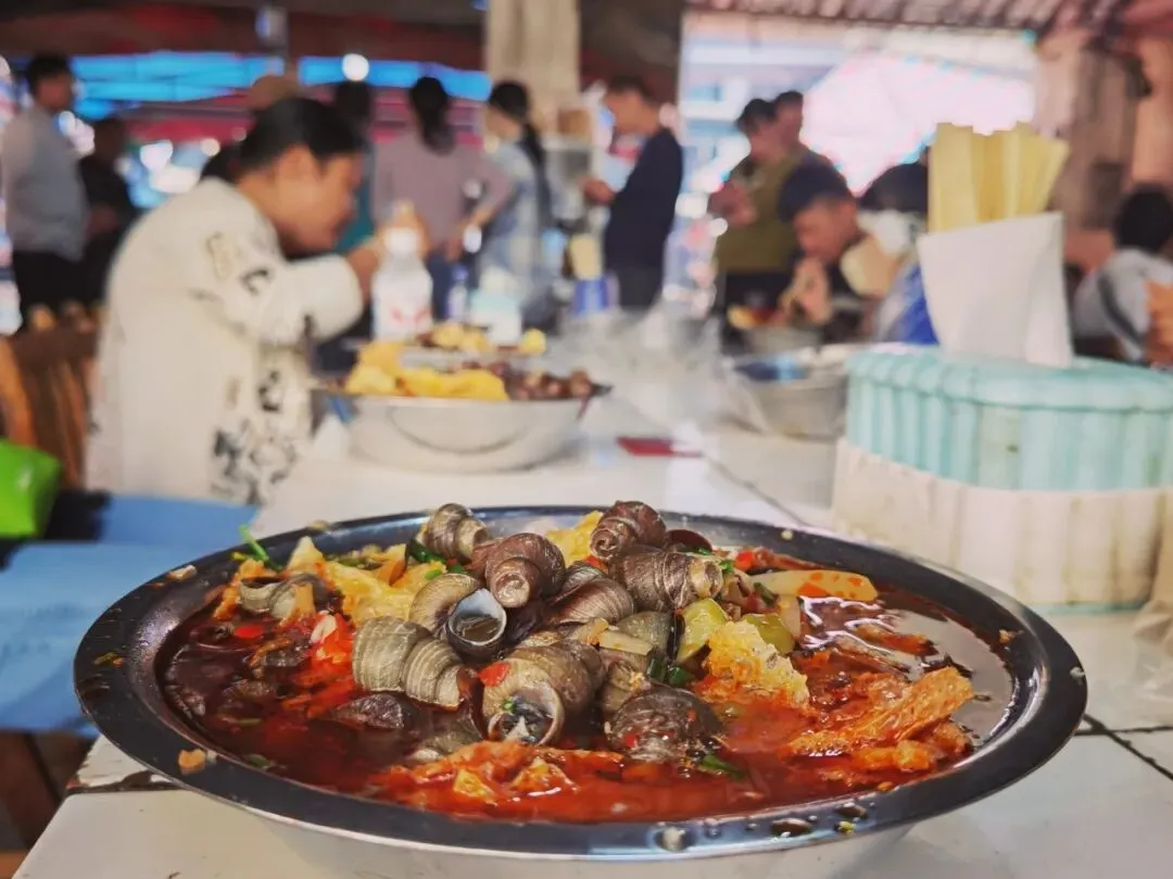 干饭时间:烧烤摊下午 5-6 点出摊,牛肠酸全天都有,逛累了随时吃。