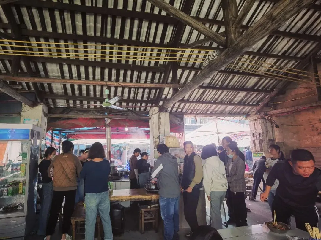 爆款美食:瓦顶下排队最长的网红螺蛳粉(10元豪华版:螺蛳+卤蛋+香肠),柴火熬煮汤底香浓;旁边的慧姐油炸麻圆,刚出锅裹满芝麻,外脆里糯;二哥家的香芋扣肉,独家秘制酱料,香醇不腻。