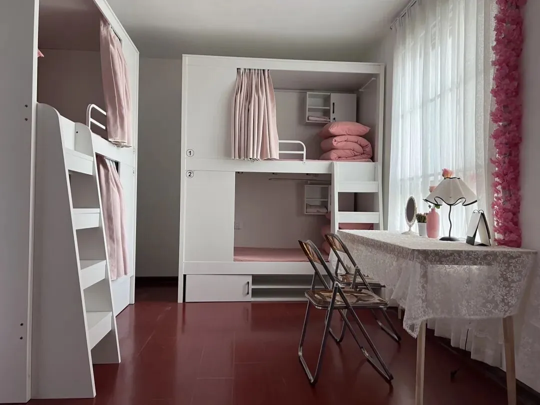 虽然便宜又普通,但是老板收拾得很干净,床单被套都是粉粉嫩嫩的。老板拜托我给她个好评,结果她看了我随手一拍的照片说: