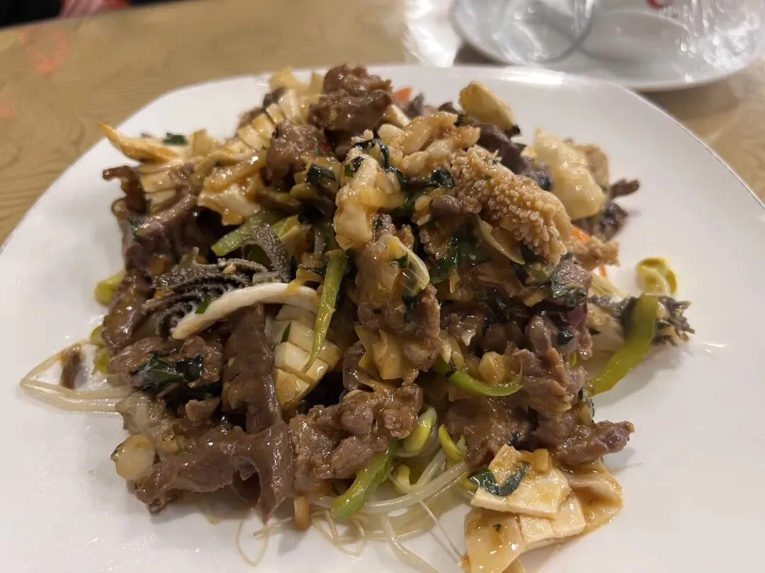 晓林说很特色的这道“紫苏牛杂”,我吃出了里面有生姜,切得很细碎。本来很好吃的一道牛杂,一下子让我头脑发晕一阵恶心。我吃不了生姜,一点也吃不了。