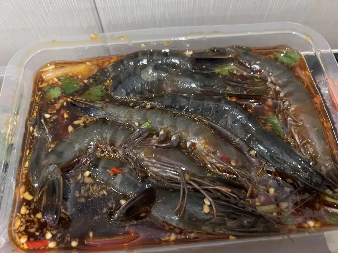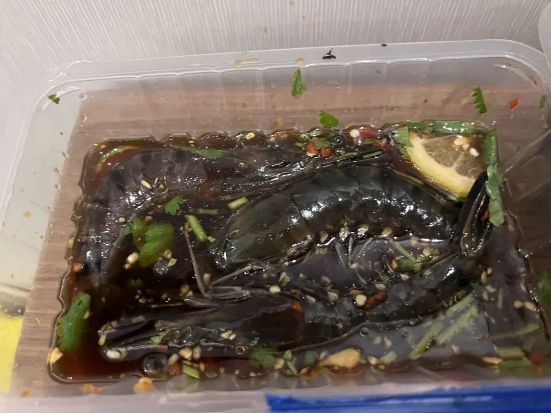 生腌黑虎虾。