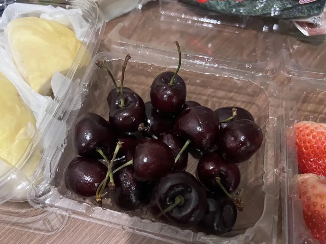 榴莲、车厘子和草莓。