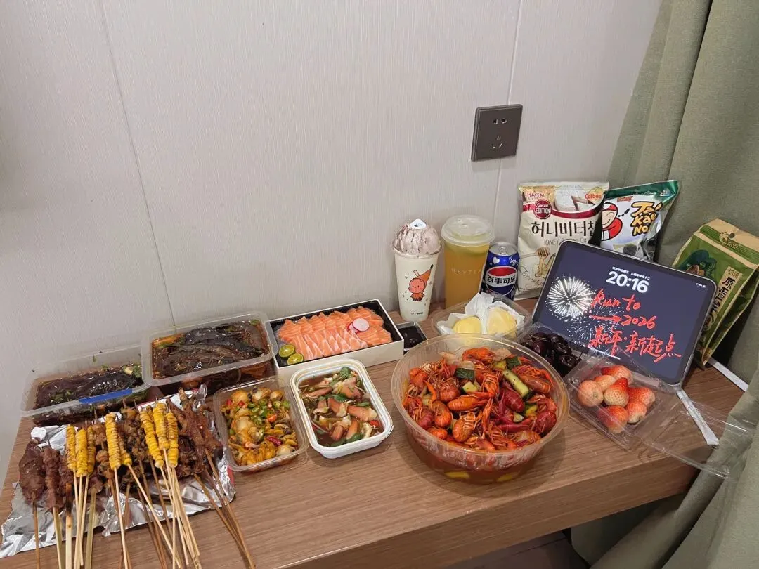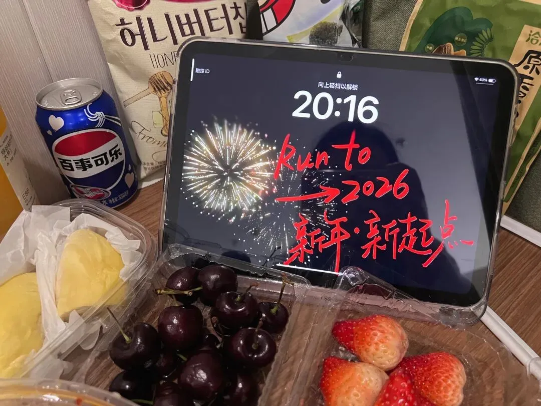 特地找了一个新年的照片,放在iPad上当屏保,摆拍的时候特别有氛围感。发朋友圈告诉所有人,虽然我是孤身一人在流浪,但我把自己照顾的很好。跨年的日子我一点都不孤单,我很快乐很幸福!拍完我要开动了,饕餮大餐,看自己喜欢的电视剧!