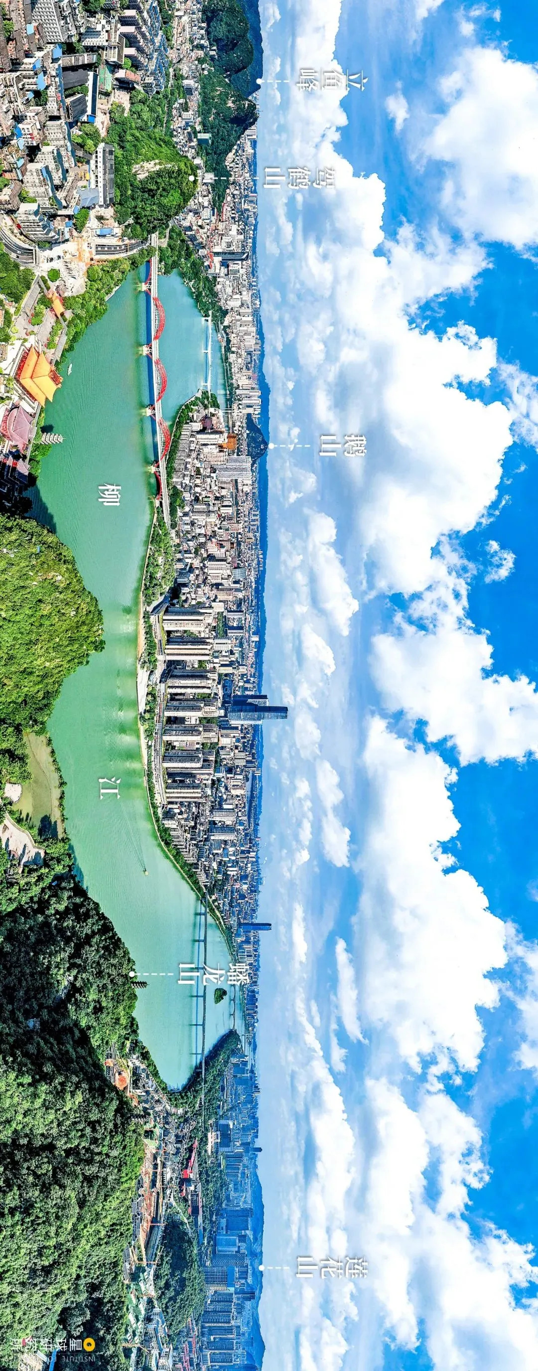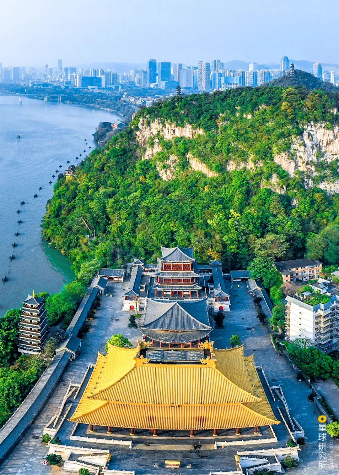 你能看到柳江两岸寺庙、群山、楼宇相互映衬,一片碧水蓝天。