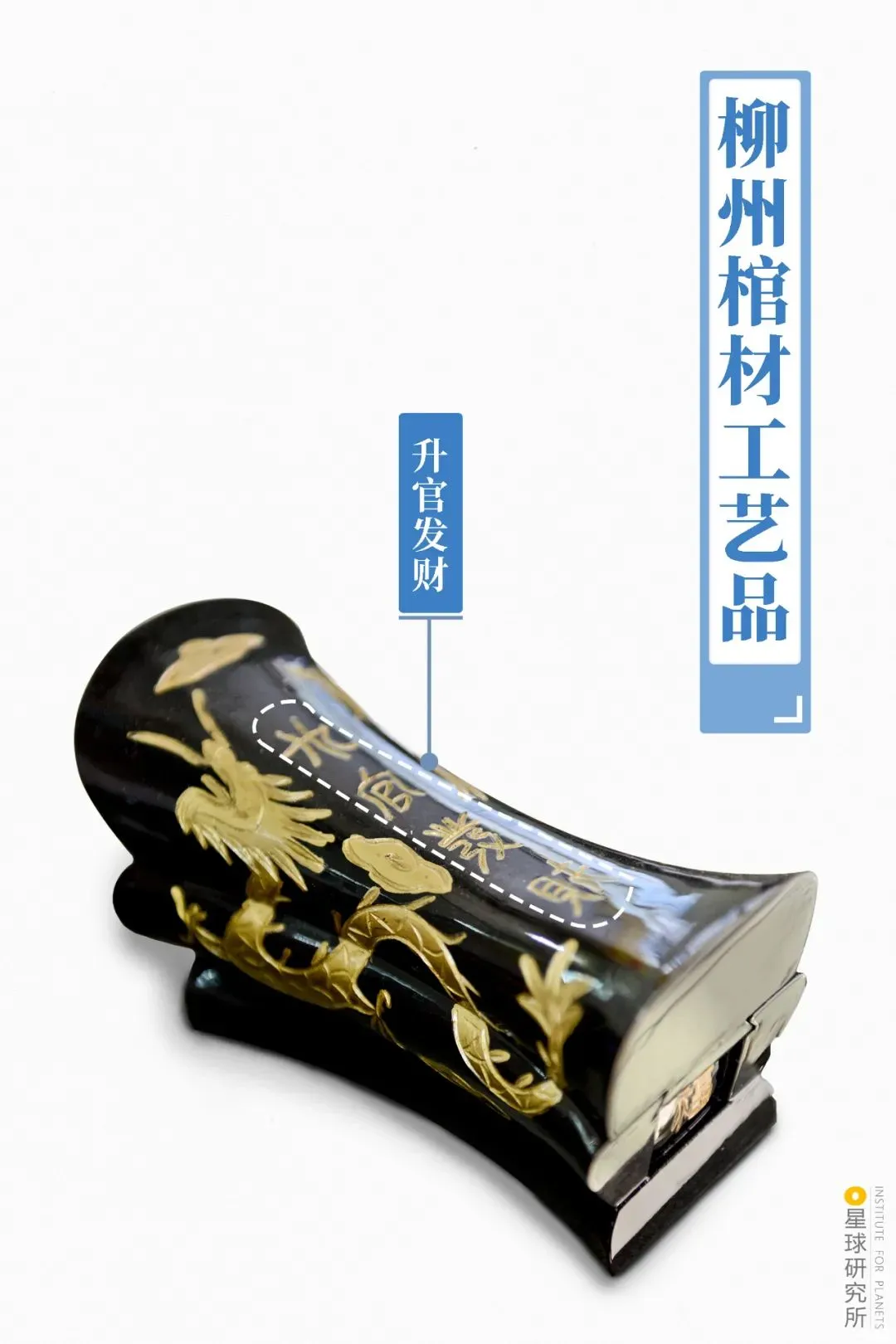 柳州人取“升官发财”之音,大胆将柳州棺材制成工艺品;下图是柳州棺材工艺品 | 制图@罗梓涵/星球研究所 ;图片来源@视觉中国