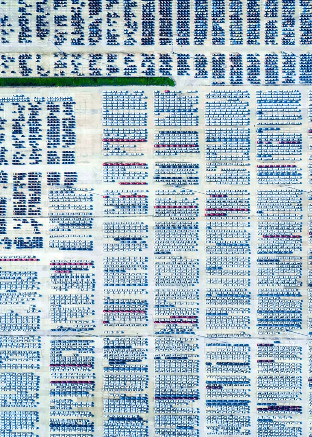 2019年,广西柳州的新能源汽车摆出“70”造型,庆祝新中国成立70周年 | 图片来源@视觉中国