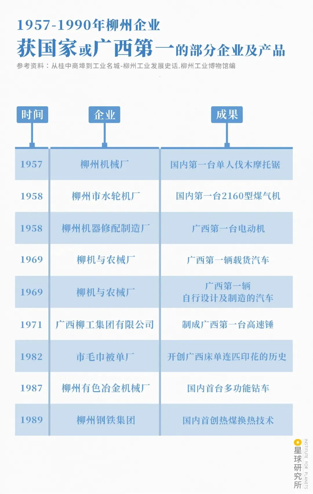 1957-1990年柳州企业荣获国家或广西第一的部分企业及产品示意 | 制图@罗梓涵/星球研究所