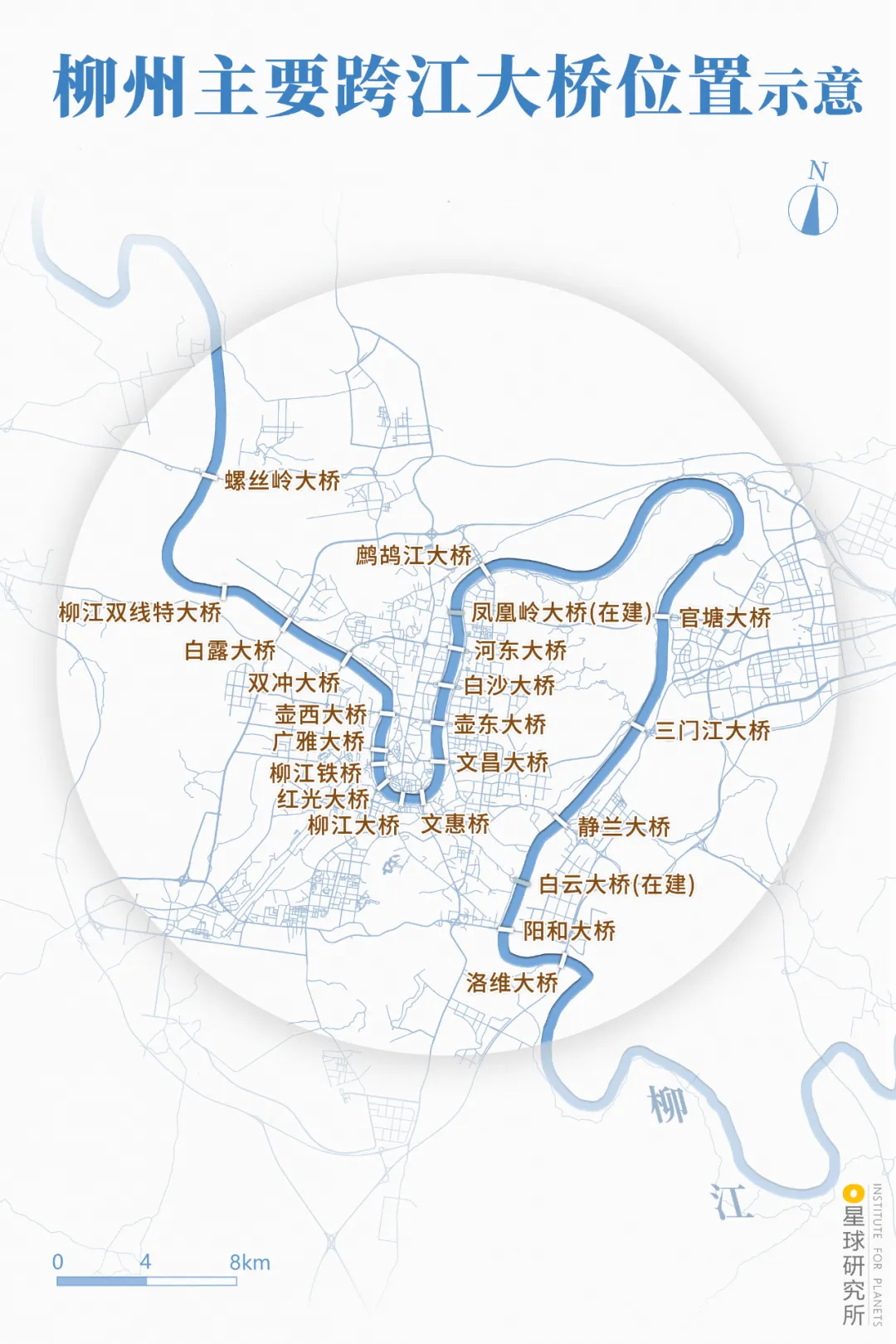 柳州主要跨江大桥位置示意 | 制图@郑艺/星球研究所
