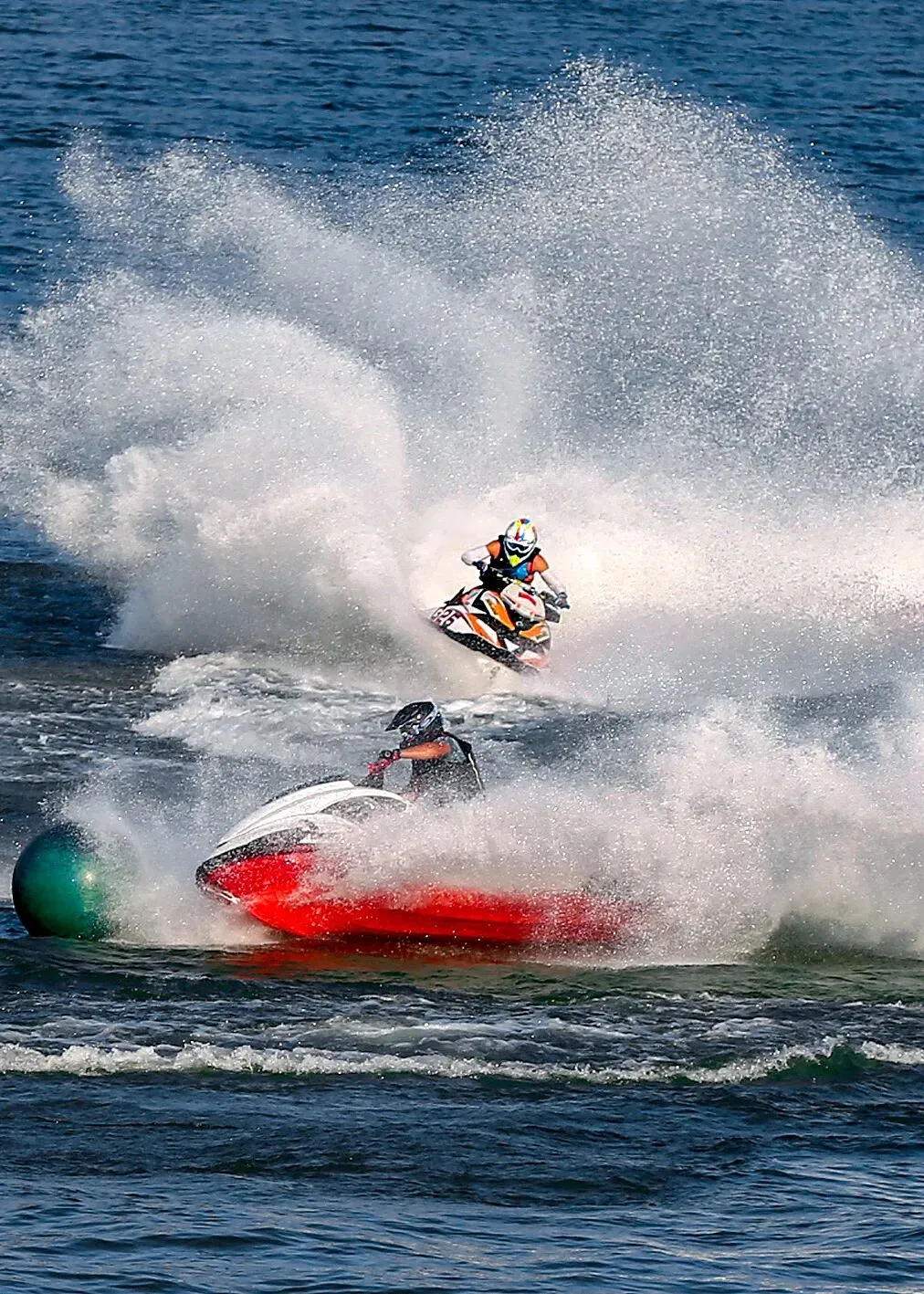 每年10月柳州还会举办柳州国际水上狂欢节;下图是在柳江上飞驰的摩托艇 | 图片来源@视觉中国