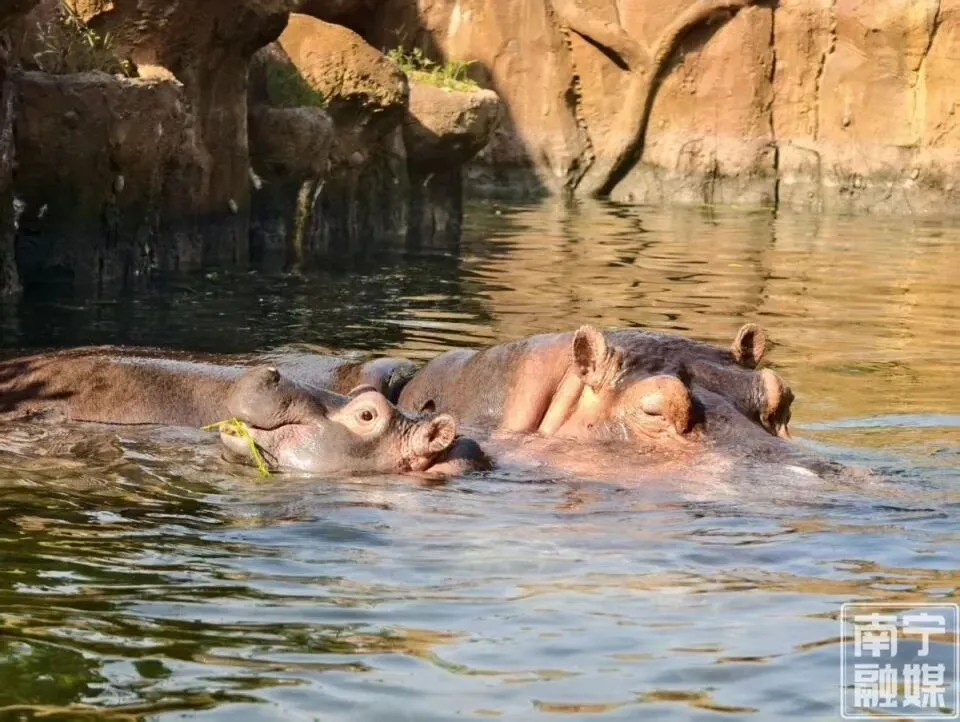 河马“泡温泉”。