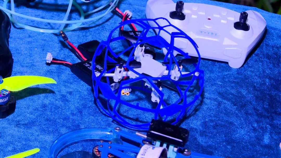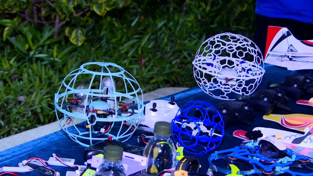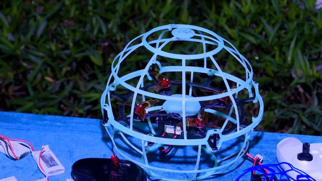 现场 传统的无人机,它的桨叶是裸露的,我怕它刮到(小孩)手或者哪里,比较危险,所以我们就做了一个罩子把它保护起来。它都是能及时地反弹。