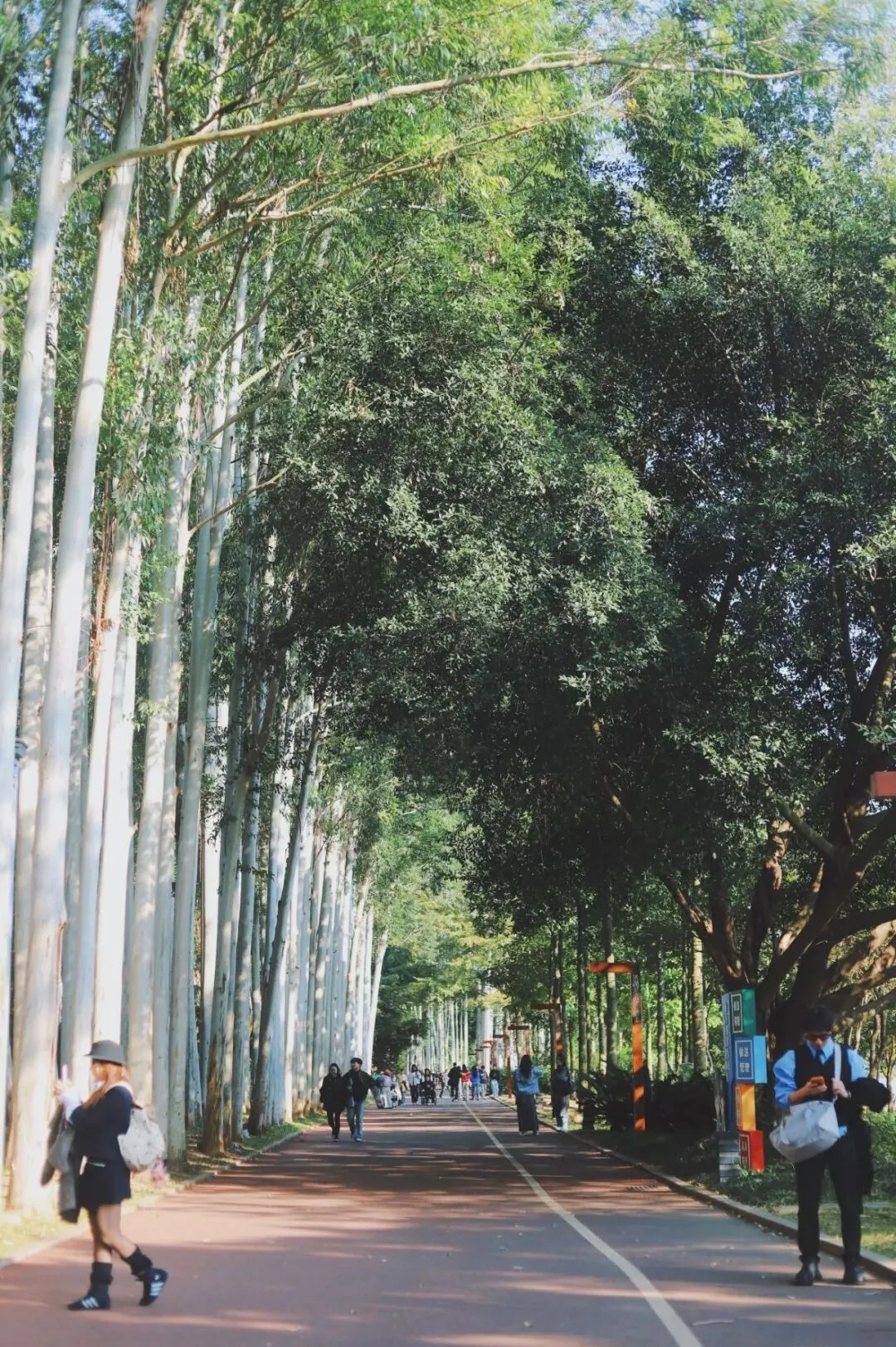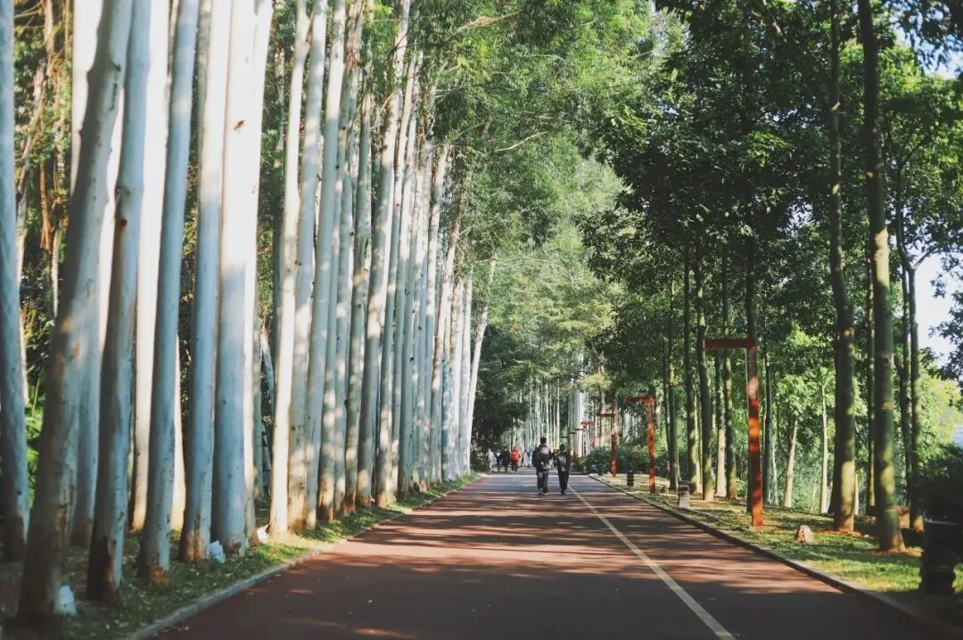 这里有一片出片的桉树林,树干笔直挺拔,叶片翠绿鲜亮,很多喜欢拍照的美女,都喜欢来这里打卡。
