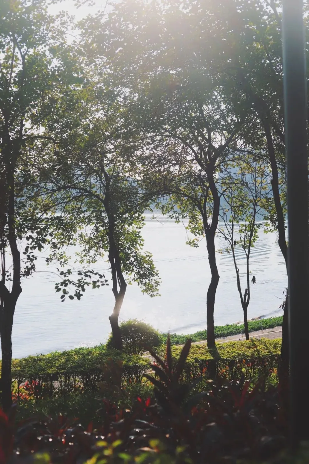 沿着桉树林的小道继续前行,还能欣赏到波光粼粼的江水、船...像穿进了一幅田园画里。