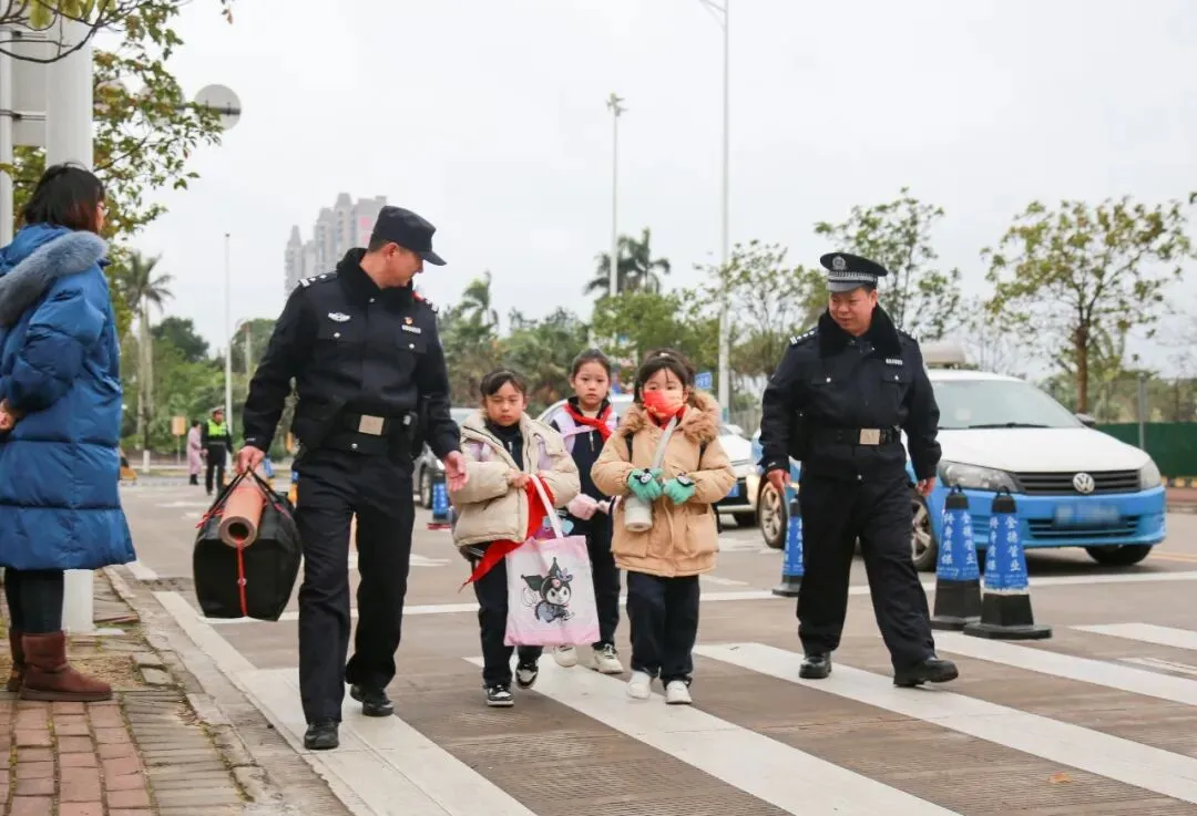 春季开学季,民警在市实验小学马正开校区护学岗执勤,为学生开学保驾护航。