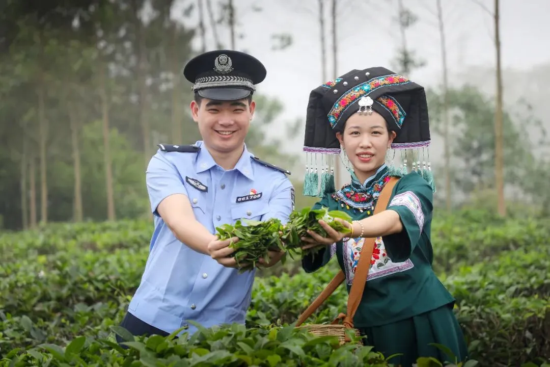 采春茶时节,民警主动到辖区茶园开展走访,帮助茶农采摘春茶。