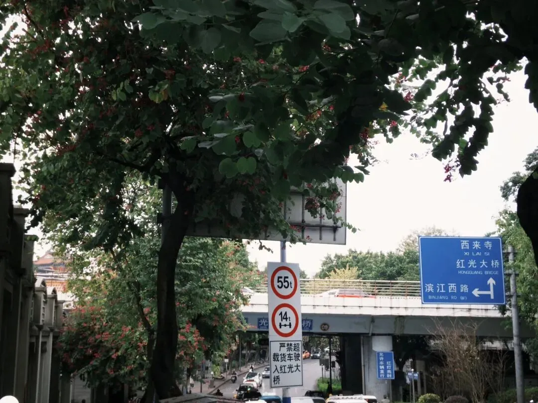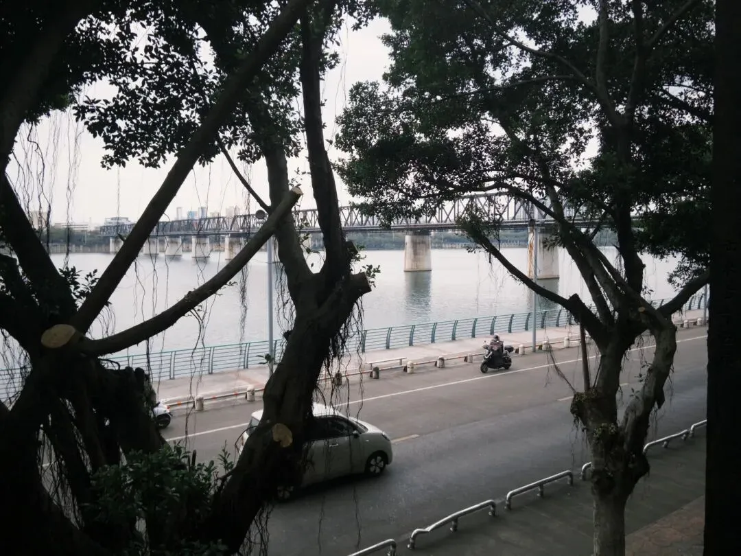 假期和朋友一起去柳州玩,四个半小时的车程,傍晚五点到站。在出站口打车的时候,天空是缄默的铅灰色,黄色和绿色的出租车停靠在路边,像一尾黄绿相间的鲤鱼。风吹在脸的触感,让我想起离得不远的老家小县城,这样冷的风,我高中时常常吹到。现在只觉得一切刚刚好,眼前的风景萧瑟了,对万事万物的热情反倒开始奔腾。从高铁站去酒店的路上,车一路驶过十字路口、驶过红光大桥,朋友在深圳用富士拍海对岸的建筑,废土风和科技感交织,眼前轨道上的殷红支架,却因为厚重仿佛生来就应该布满铁锈。进入城区后,路况开始拥堵,古树的枝叶轻抚旧建筑,经久不衰的老店和兴起的连锁店错落分布,一切融合得实在太好。我们就此展开三天两夜的体验之旅。