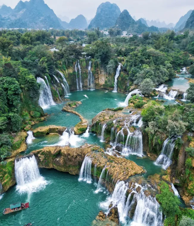 它不是那种细水长流的婉约派,而是千军万马奔腾而下的豪迈。山不高,但有气势。水帘洞是真有,瀑布不夸张,洞口一凉,汗就退了。站在观景台上,对岸就是越南,近得仿佛能听见对面小贩的吆喝声。