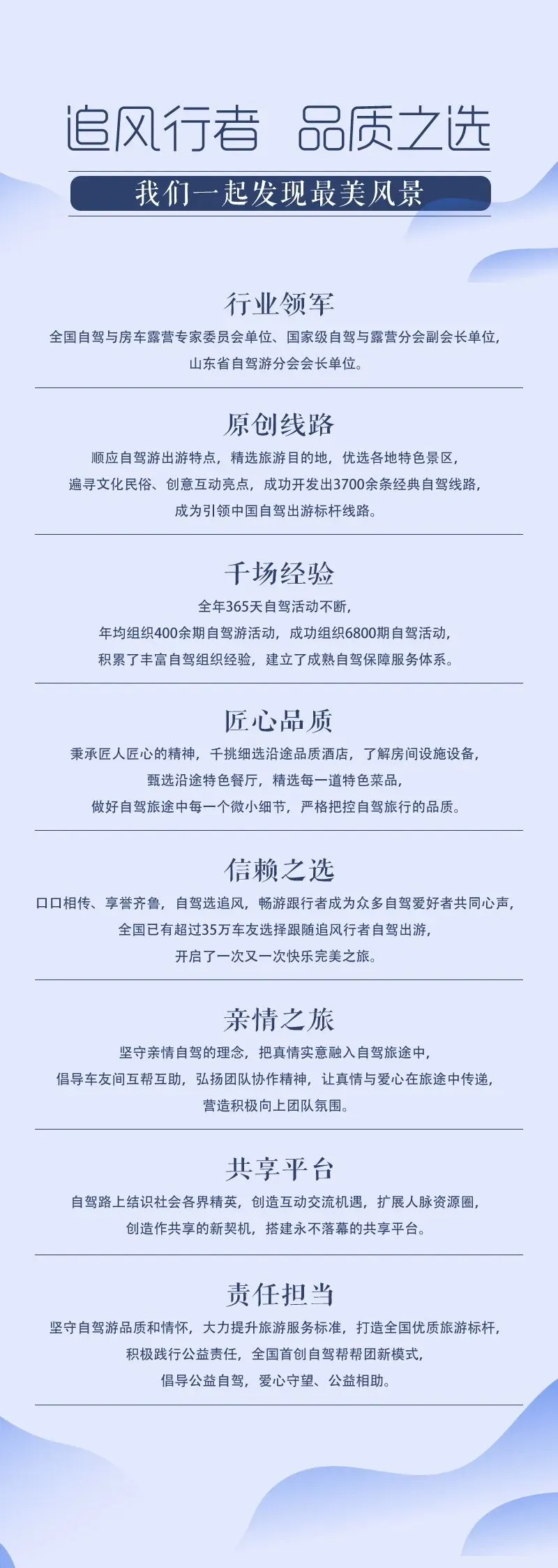 4、春节期间正值寒冬时节,道路通行比较复杂,如遭遇冰雪、大雾等恶劣天气时,追风行者领队有权视天气状况对自驾行程做出调整。