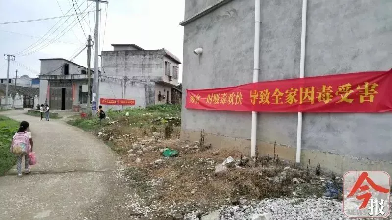 6月19日,记者驱车来到鲁比村看到,村道两旁到处都挂满了红色的禁毒标语,各类禁毒宣传海报随处可见。
