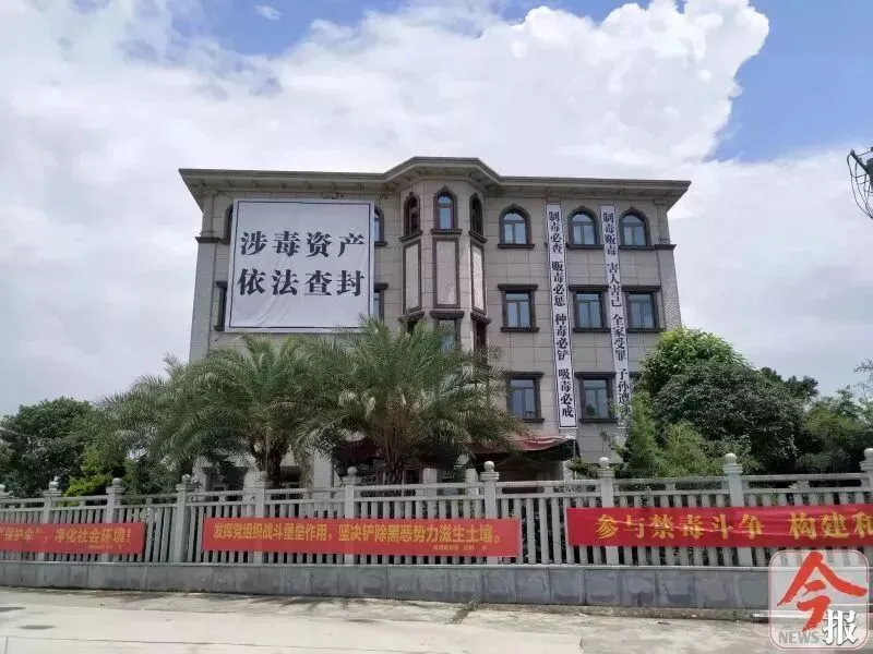 在鲁比村小广场旁,就是张加爱的豪华别墅。大门已被公安部门贴上封条,别墅楼体前后以及大门处,都悬挂有“依法查封涉毒资产”的大幅海报。