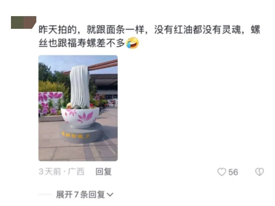 今年国庆时,一个螺蛳粉形象雕塑