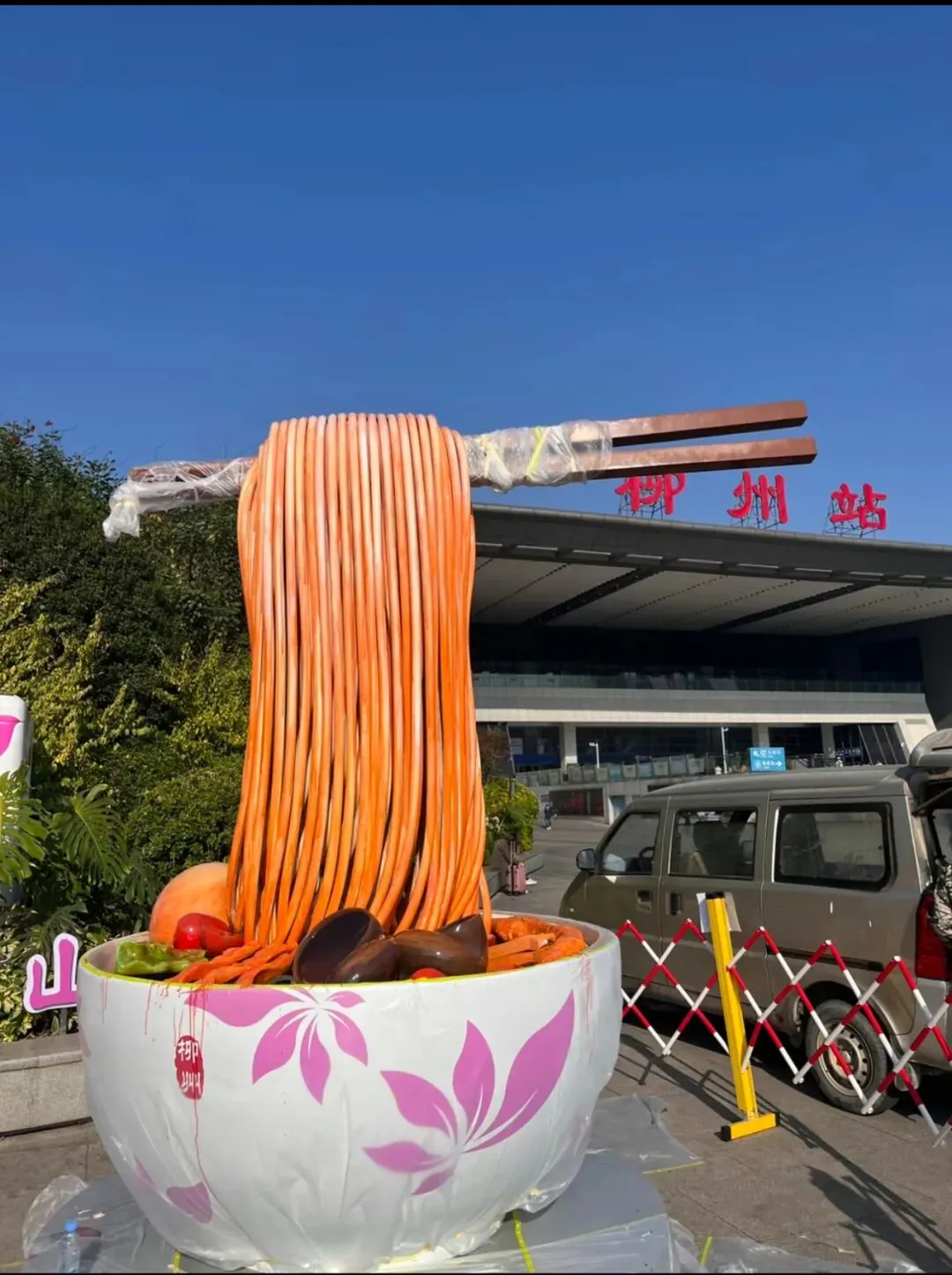 柳州螺蛳粉雕塑如今焕新登场