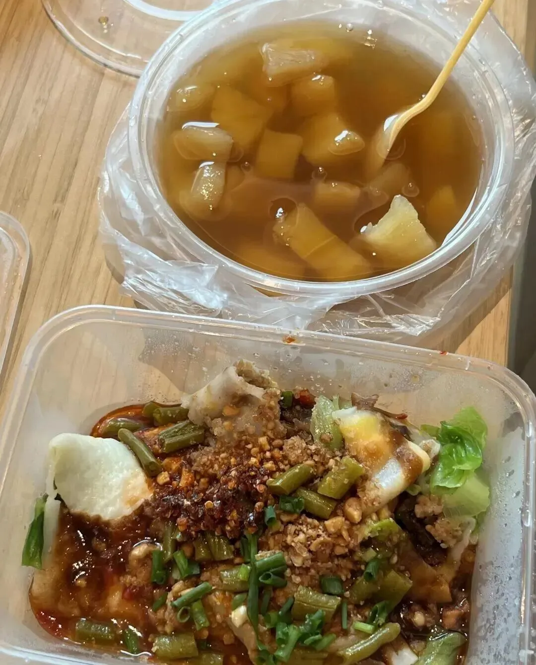 杨嫂豆花点三拼 , 加槐花粉和糯玉米 , 淋上桂花蜜 , 冰冰凉凉特别清爽。 卢姐炒冰是鲜果现榨现炒 , 葡萄和牛油果好吃 , 芒果偏腻。 还有刘乐仙凉茶 , 3块钱一碗 , 巨苦巨下火 , 本地人端起来就干 , 我喝了一口差点没缓过来。