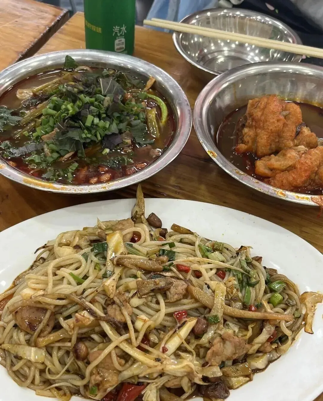 来柳州不吃螺蛳粉说不过去 , 但我有个发现 , 干捞和炒粉比汤粉好吃。