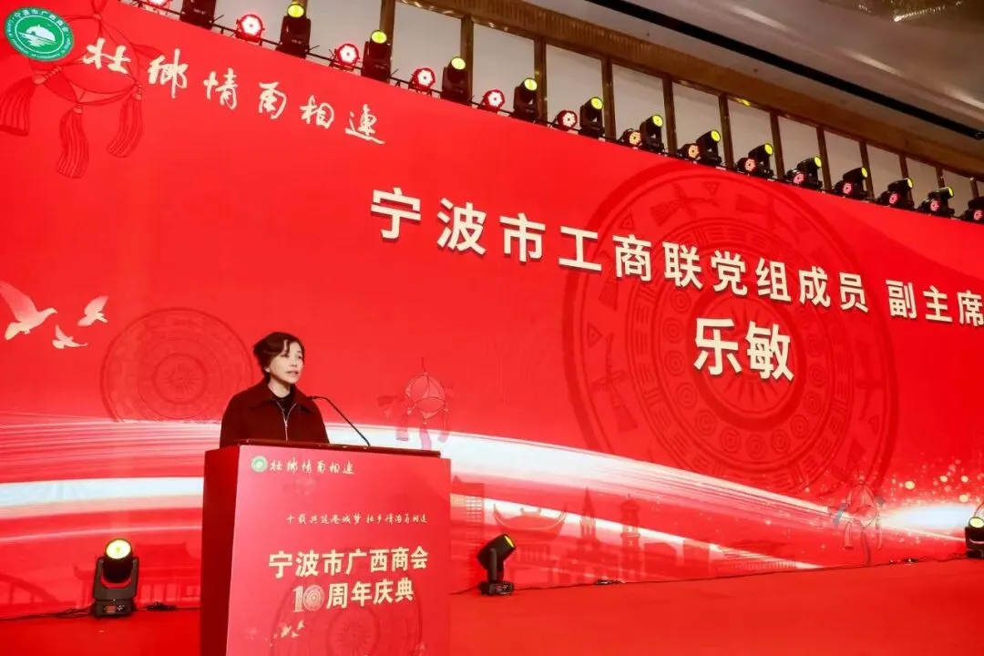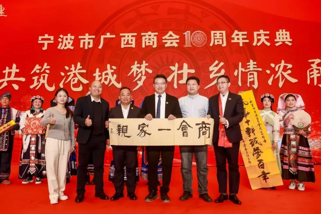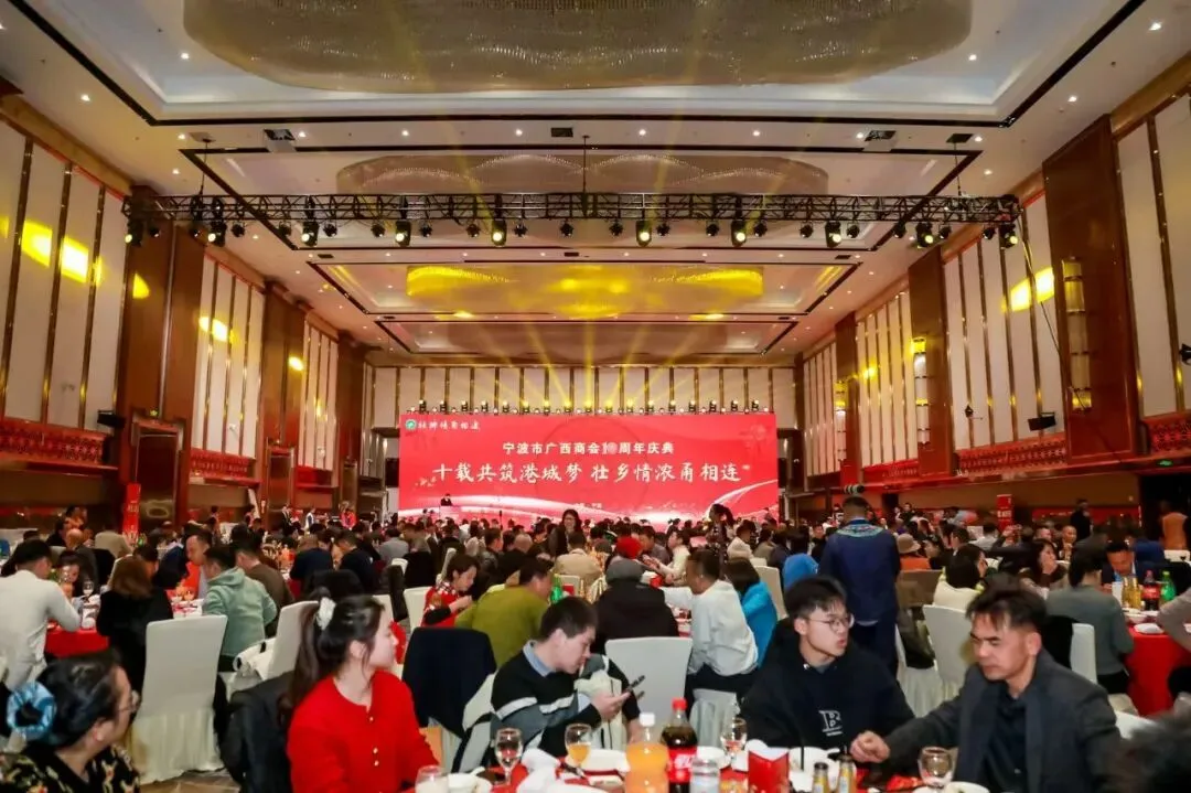2026年1月10日,宁波市阳光豪生大酒店灯火璀璨、暖意融融,以“十载共筑港城梦,壮乡情浓甬相连”为主题的宁波市广西商会十周年庆典在此盛大启幕。上海市柳州商会作为兄弟商会专程组团赴甬,与来自长三角地区以及全国各地的广西商会同仁及各界嘉宾齐聚一堂,共贺庆典、共话乡情、共商发展,现场洋溢着浓浓的乡音与蓬勃的朝气。