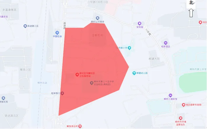 跃进路一区、跃进路28号、30号、跃进路东一巷146号、金嗓子科创园、广西广播电视信息网络股份有限公司柳州分公司、金都花苑、物贸宿舍、柳北区东麟社区卫生服务站、柳州市第三十五中学北站校区(南校区)、地区交警队家属宿舍楼小区、印刷厂宿舍等沿线用户。