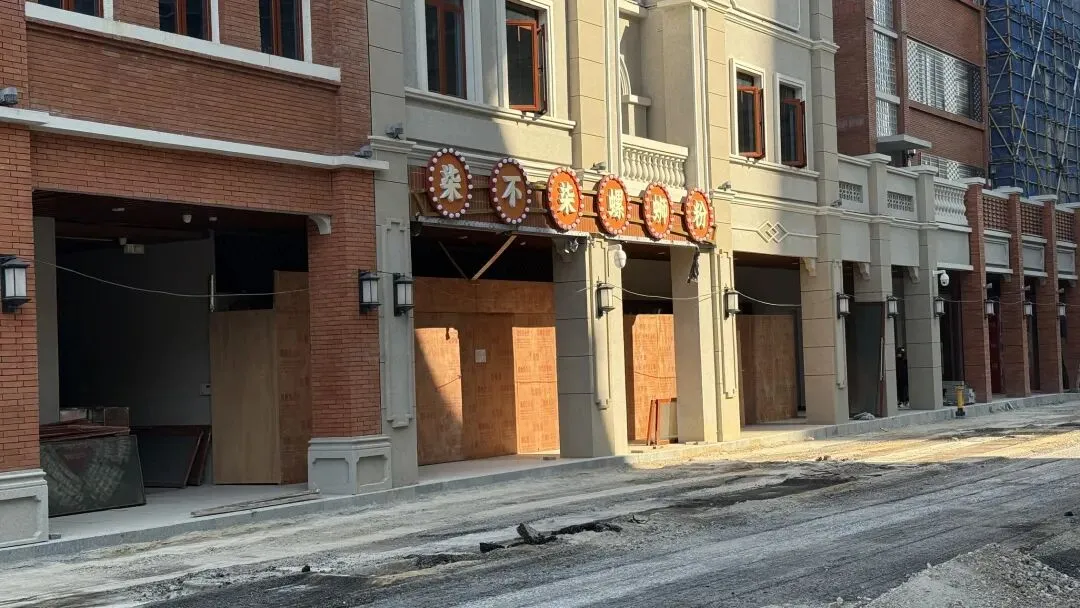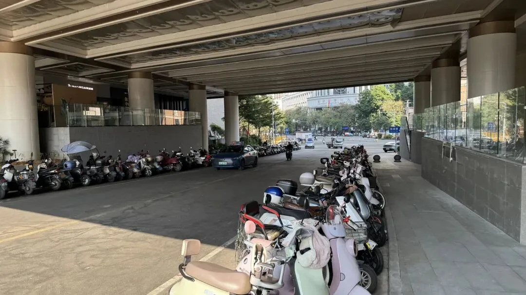 在跟中山街接壤的地方,现在也在重新铺地面了,这也就是万象汇的中庭门口出来的位置。