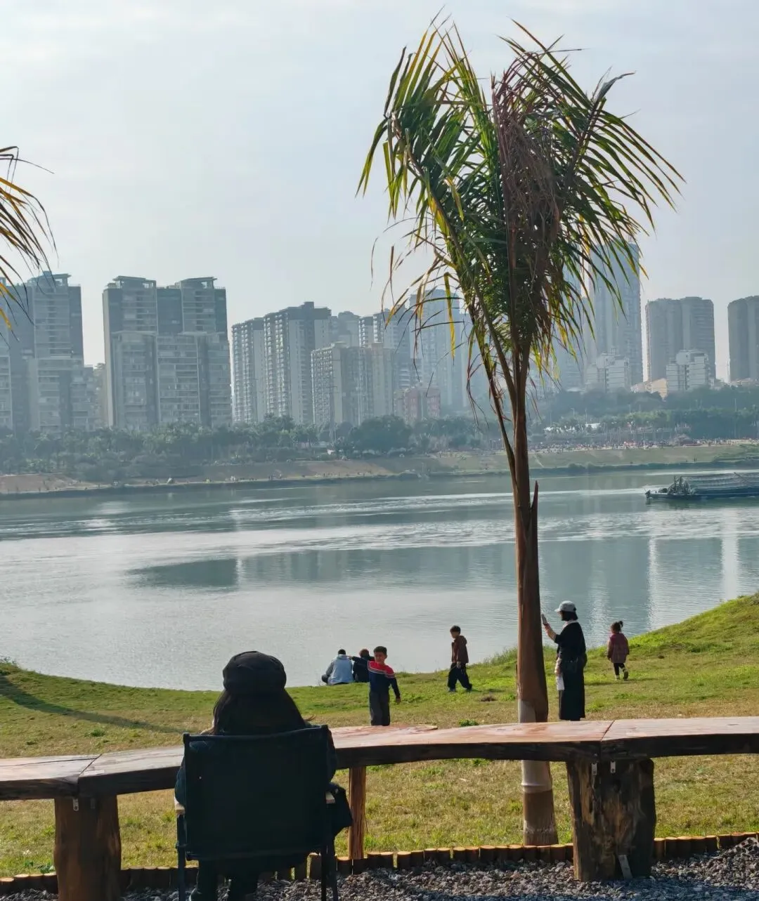 江堤上,人像撒开的芝麻,东一簇,西一簇。毯子铺开,小孩的笑声尖尖的,追着风跑。