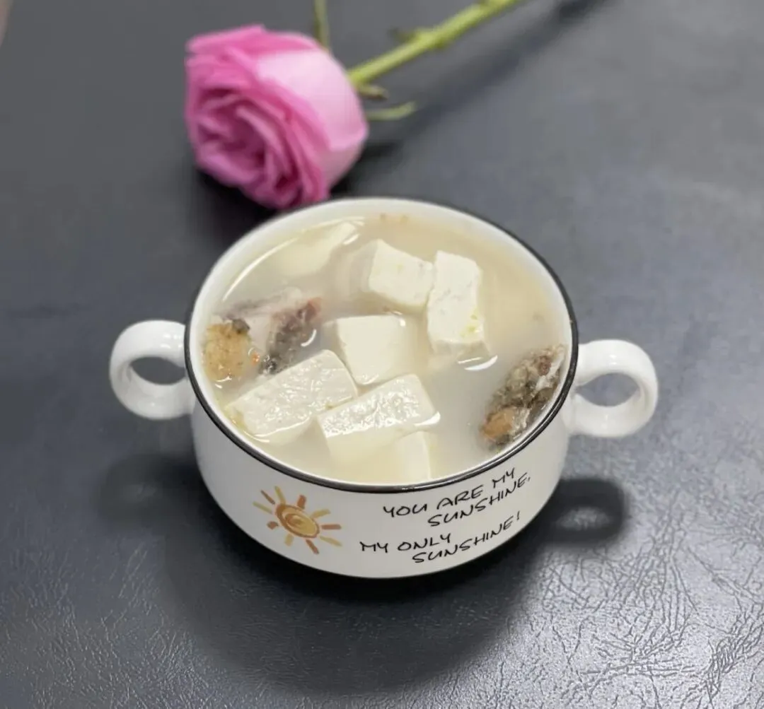 娃娃菜鲫鱼豆腐汤中的沙骨和鲫鱼提供优质动物蛋白,搭配的嫩豆腐补充植物蛋白与钙质,能有效促进骨骼钙化。娃娃菜富含维生素C与膳食纤维,维生素C可提升鲫鱼中血红素铁的吸收率,膳食纤维则能温和促进肠道蠕动。营养配比均衡,既满足幼儿生长发育需求,又符合清淡易消化的饮食原则。