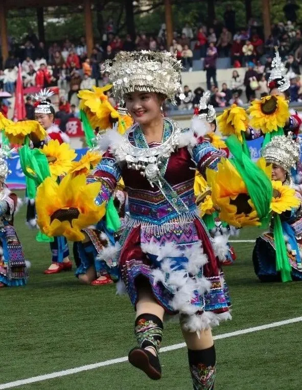 阿哥阿妹踩着芦笙节奏跳舞助威