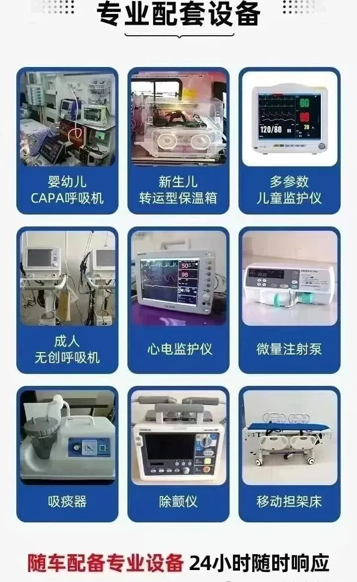 其核心优势是全方位医疗保障。转运救护车配备心电监护仪、呼吸机等“移动ICU”设备,经防震固定与双电源备份,颠簸路况也能稳定使用;随车医护经验丰富,精通急救技能,可实时监测病情、处置突发,保障转运安全。