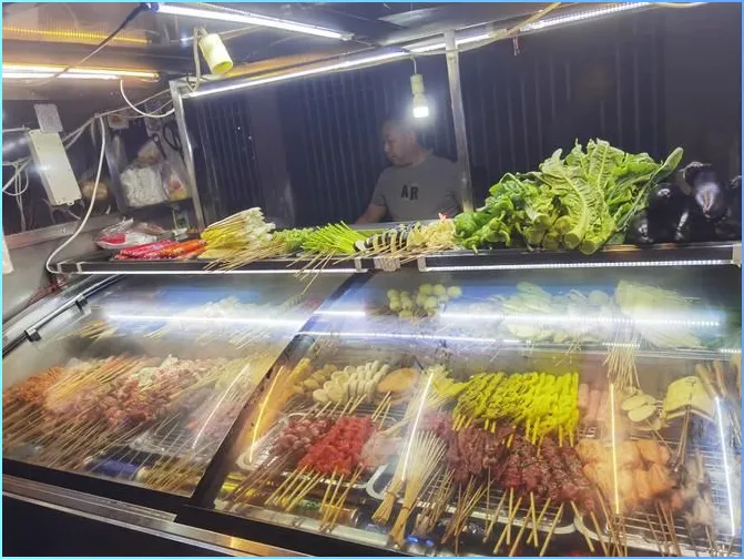 文山的烧烤是另一个重点。傍晚六点多,烧烤摊子陆续支起来,炭火烧得红红的,串好的肉在火上翻烤,油滴下去,火苗蹿起来,烤肉的香味像一层薄薄的雾弥漫在街上。牛肉串、五花肉、鸡翅、茄子、韭菜,什么都能烤。老板刷上辣椒粉和孜然,香味是亮的,像一股热浪扑面而来,鼻子里全是那股焦香混着辣味的气息。