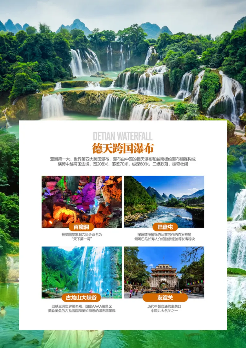 温馨提示:不含德天景区竹筏48元/人,电瓶车10元/次