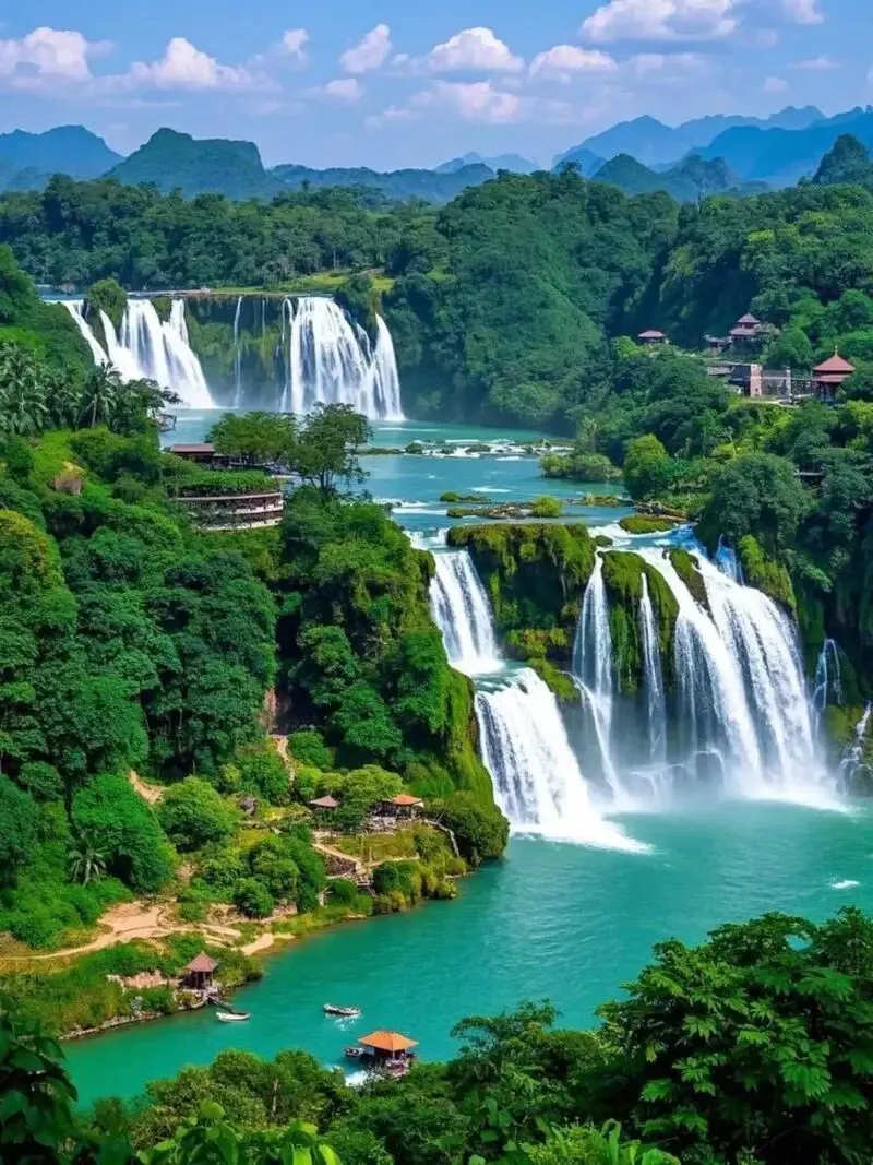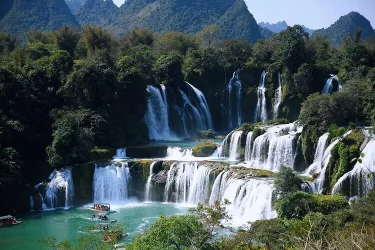 早餐后乘车前往AAAAA级德天景区,游览《德天跨国大瀑布》景区(不含景区接驳车35元/人,当地现付导游;游览时间约2小时),徒步进入景区游览亚洲第一大、世界第四大跨国瀑布,瀑布由中国的德天瀑布和越南板约瀑布相连构成,横跨中越两国边境,宽208米,落差70米,纵深60米,三级跌落,雄奇壮阔!