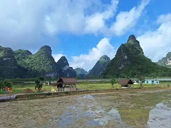 自费游览《明仕田园》景区(费用自理游览时间约90分钟),明仕田园为国家一级景点,山明水秀,风光俊朗清逸,恍如隔世般的美好素有小桂林之称,还获得“隐者之居”、“邮票上的山水田园”的美誉。国家邮政局公开发行的一套《祖国边陲风光》特种邮票中,明仕田园风光入选为邮票题材。另有多部电视剧《花千骨》、《牛郎织女》、《酒是故乡醇》、《天涯侠医》、《草本药王》等纷纷在此取景拍摄;后前往硕龙/下雷/靖西,晚餐后入住酒店。