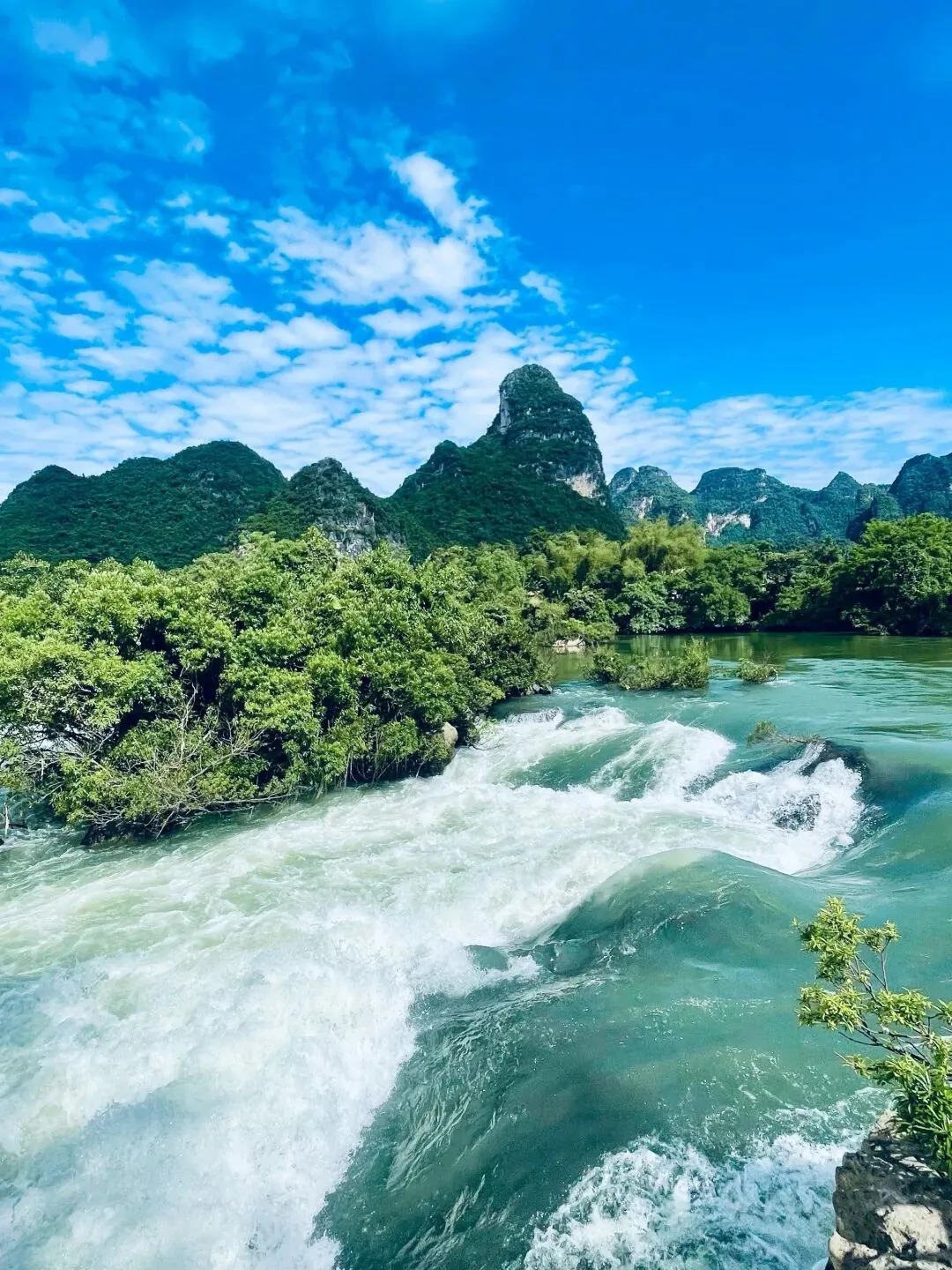 后乘车前往国家AAAA级【峒那屿湾】景区游览(费用自理)景区以得天独厚的地理优势,集奇山秀水精华,承千年土司文化,两峒三岛湾,百屿望千山,恰如诗人白居易《题王处士郊居》诗文中“半依云渚半依山”之境。2015年,景区被评为中国最具原生态景区、2017年被评为国家4A级旅游景区、2019年景区所属河段正式成为国家级湿地公园; 为何名为“峒那屿湾” 你知道它的含义嘛?“峒”— 山水人家、“那”— 良田沃土、“屿”— 小岛星罗、“湾”— 河湾舟渡,这里就如同它的名字一般,壮族特色与地域风光兼具。乘舟游览安平仙河,在它独特的喀斯特山水风光下,蓝天、云海、水雾交织成震撼人心的“人间仙境”,山光水色尽收眼底。漫步河岸,植被茂密,湿润气息扑面而来。走上霞客栈道放眼望去,龙碧滩叠瀑群水流湍急,像极了放飞的白色丝绸,从上游河流飞泻而下。连绵起伏的瀑布群在葱郁的河谷中相映成趣,壮观又清新怡人。在这里,深吸一口气,仿佛整个人都融入了山水之间,与大自然亲密接触。